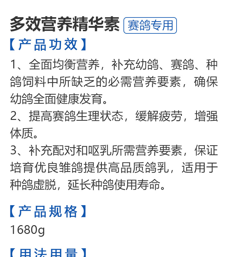 【心连心】多效营养精华素 1680克 加快幼鸽发育/延长种鸽寿命/补充营养