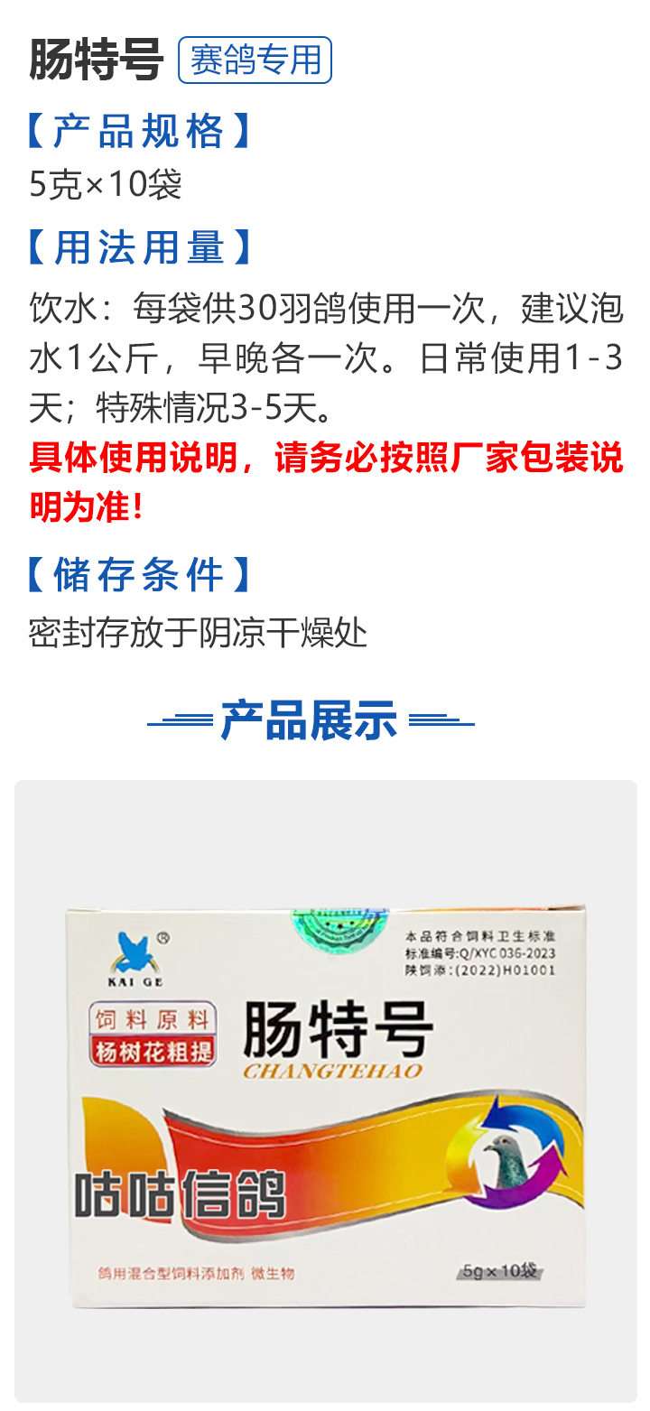 【西安凯鸽】肠特号(原肠道专家) 5克×10袋 调解肠胃抑毒杀菌/沙门氏大肠杆菌/平衡机体功能/活菌
