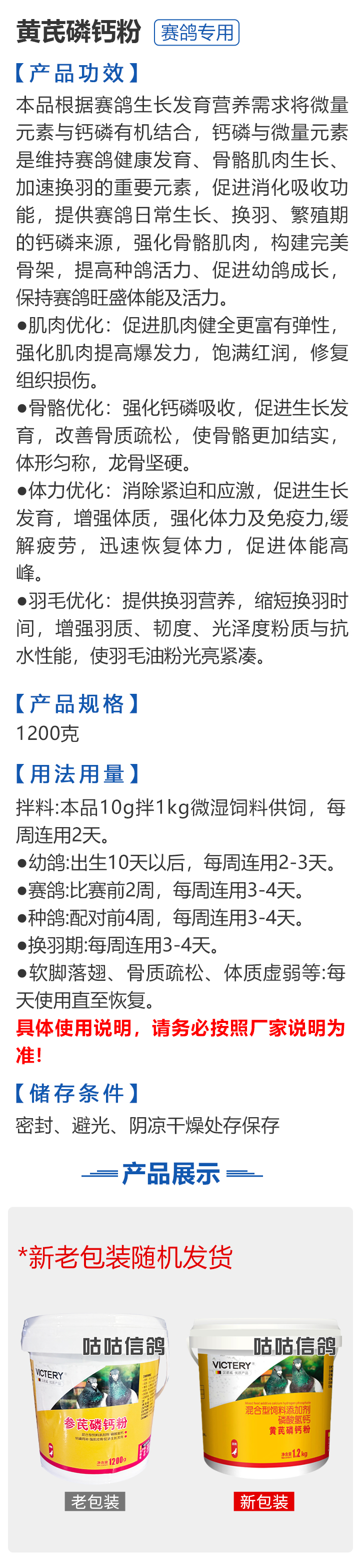 2025双节同庆•满500-40元  -  指定商品:【爆灯】蓝精零 5克×10包 蓝色电解质/抗紧迫;【爆灯】鸽滴威 5克×10包 毛滴虫/念珠菌/黄色痰丝/乳白痰丝/喉咙白点;【爆灯】莎门停 5克×10包 副伤寒/沙门氏菌/伤寒/葡萄球菌/拉稀/水便/肠道;【爆灯】高效虫灭灵 5克×10包 五种体内虫/蛔虫/线虫/鞭毛虫/球虫/绦虫/血便/打虫;【爆灯】益南混甘 5克×10包 发热/咳嗽/流泪/歪头/张口呼吸;【爆灯】滴球快克 5克×10包 毛滴虫/球虫/二合一/喉内白点/起痰;【心连心】滴莎 10克×6袋 毛滴虫/念珠菌/喉内白点/口黄绿便;【爆灯】乎滴亢 5克×10包 呼吸道/毛滴虫/2合1;【爆灯】超浓缩喜乐菌 500毫升 活菌/大肠杆菌/减少下痢/水便;【心连心】球莎 10克×6袋 升级版配方/中西结合/迅速杀灭球虫;【爆灯】维诺护肝精 250毫升 强肝解毒/消除疲劳紧迫/促进幼鸽成长/提供维生素微量元素/调节高峰状态;【爆灯】虱螨体虫清 500毫升 杀灭体外寄生虫/螨虫/羽虱/血蜘蛛/打虫/洗澡;【爆灯】球可定 100毫升 广谱抗原虫/球虫/小肠球虫/血便/飞翔下降羽毛松乱/消瘦脱水打呵欠;【爆灯】复合预混合饲料Ⅱ维益菌 227克 肠道/绿便/水便/黄便/嗉囊炎/活菌;【爆灯】肠道宝 500克 保护胃肠道/增强肝脏解毒功能/修复肠粘膜/活菌;【心连心】莎J净 10克×6袋 升级版配方中西结合/杀灭大肠杆菌/沙门氏菌;【心连心】鸽C净 10克×6袋 升级版配方中西结合体内外寄生虫;【陈永山】金牌三冠丸 300粒 职业鸽舍保健秘方/强化幼鸽骨骼;【顶峰】复合菌(胶囊)100粒 加速消化/粪便成型/增强食欲/活菌;【爱丽丝】喉痢清(加强型) 60粒(胶囊) 羽毛松散蓬乱/呼吸困难/腹泻/咽喉溃疡/呼吸道/走路失去平衡/呼吸道;【顶峰】能量钙(浓缩型) 2.5升 纳米钙/天然骨胶原蛋白/磷钙镁锌/微量元素/骨骼发育/肠道吸收/维生素;【爱丽丝】衣原净一代 60粒(胶囊) 眼部流泪/呼吸困难/喉部粘液/喘气/打喷嚏/衣原体/单眼伤风/呼吸道;【施德福】特号六合一混合剂 5克×10包 呼吸道/毛滴虫/球虫/肠道/下痢/腺病毒;【爱丽丝】毛滴虫净 60粒(胶囊) 毛滴虫/喉部黄斑/喉部粘液/口腔白点/飞行能力下降/闭眼;【爱丽丝】刹杆净(原沙门氏菌大肠杆菌杀星) 60粒(胶囊)沙门氏菌/大肠杆菌/水便/绿便/体重减轻/关节肿胀/翅膀下垂/飞不高;【爱丽丝】肝精 5克×10袋 强肝解毒/降低脂肪肝/提高免疫力/清肝明目;【施德福】卡尼丁肝肾液 250毫升 提供能量/提高视力/健脾和胃/增强体质;2026.7.2到期【施德福】精华液 250毫升 补充所需营养/维生素/恢复体力/保持巅峰/提高种鸽育种;【爱丽丝】呼吸道特号 60粒 (胶囊) 上呼吸道/口内浓痰/打喷嚏/气喘/呼吸困难/流鼻涕;【施德福】口服苗液 25毫升 肠道/呼吸道/新城疫/腺病毒/支原体/鸽瘟/六合一口服苗;【宜豪】宜豪1号免疫活菌飞速健 300锭 国际最新专利/益生菌/天然酵素/促消化/增强免疫/耐热;【宜豪】宜豪1号免疫活菌飞速健粉 800克 国际最新专利/益生菌/天然酵素/促消化/增强免疫/耐热;【天津版稳拿】稳拿二号(消化肠道) 3公克×8袋 稳拿2号/肠道/沙门氏/细菌性肠炎/下痢/紧迫性水便/消化不良/食欲不振/鼻毛耸立/发育不良/活菌;【宜豪】宜豪2号转骨钙 300锭 转骨素/钙质吸收/移行抗体增强免疫力/活性矿物质/营养补充/补钙;【天津版稳拿】稳拿七号(毛滴虫) 2公克×8袋 毛滴虫/黑鼻头/口内痰丝/喉咙白点/水便/虚弱/食欲减退/羽毛松乱/幼鸽发育不良 稳拿7号;【上海龙园】魔宝 1000克 袋装/维他矿物粉/提供钙磷等微量元素及多种必须的矿物质;【宜豪】宜豪2号转骨钙粉 800克 转骨素/钙质吸收/移行抗体增强免疫力/活性矿物质/营养补充/补钙;正版【比达斯】ASD耐力胶囊 50粒 富含B12、B15、铁/富含矿物质/增加肌肉爆发/体能耐力;正版【比达斯】康多斯(呼吸道+状态) 100克 呼吸道/状态调节/呼噜声/黑鼻;【上海龙园】维他肝精 250毫升 强肝/健肝/保肝/护肝/解毒/提高种鸽育种质量/调节体能/促高峰;【上海龙园】鸽绿茶 100克 清热解毒/清肝明目/清咽利喉/鸽感冒/消化不良/纯天然绿色植物;【宜豪】宜豪1号免疫活菌飞速健 1000粒 国际最新专利/益生菌/天然酵素/促消化/增强免疫/耐热;【上海龙园】小育雏宝胶囊 100粒 调节种鸽育种巅峰/帮助幼鸽生长;【宜豪】宜豪2号转骨钙 500锭 转骨素/钙质吸收/移行抗体增强免疫力/活性矿物质/营养补充/补钙;【上海龙园】菌乐多 500毫升 肠道健康/肠道菌平衡/抗应激/活菌;【先锋】呼喉霸 5克×10包 微浆菌/衣原体/毛滴虫/新城疫混感;【先锋】依原净 5克×10包 不爱飞/羽毛松散/吃食少/单眼流泪/绿便/呼吸道/衣原体;【宜豪】宜豪6号神奇消化活菌粉 800克 抢料/消化好/增强营养吸收/酵素/益生菌/活菌;【宜豪】宜豪6号神奇消化活菌锭 1000锭 抢料/消化好/增强营养吸收/酵素/益生菌/活菌;【宜豪】宜豪6号神奇消化活菌锭 300锭 抢料/消化好/增强营养吸收/酵素/益生菌/活菌;【宜豪】宜豪5号天然草本全方位促进剂 60毫升 代谢残留/调节肝肾功能/消除疲劳/促进食欲;【西安凯鸽】客线枉 30毫升 腺病毒/甩拉吐/绿便/甩食/呕吐/缩头;【西安凯鸽】至尊独霸 100克 新城疫/腺病毒/抗菌消炎;【西安凯鸽】至尊独霸 60粒(胶囊) 新城疫/腺病毒/抗菌消炎;【爆灯】T5鸽疫快克 20毫升 新城疫/腺病毒/疱疹病毒/鸽痘/流感/特异性免疫因子;【西安凯鸽】果蔬营养丸 700克 改善肠道/提高体能/补充维生素